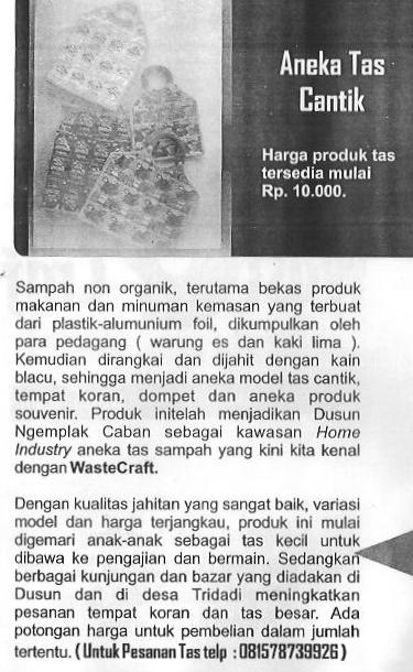 wastecraft3Belajar dari hal itu, di TBM atau perpustakaan tidak hanya membaca saja, tetapi bisa dilangsungkan kegiatan produktif yaitu menambang data dari dokumen bekas walau hanya satu lebar atau robekan kertas. Data itu diolah menjadi informasi yang penting dan bisa didesiminasikan via internet. Perintisan kerja-kerja itu dimulai ketika Dikominfo atau FRW Institute terbentuk.